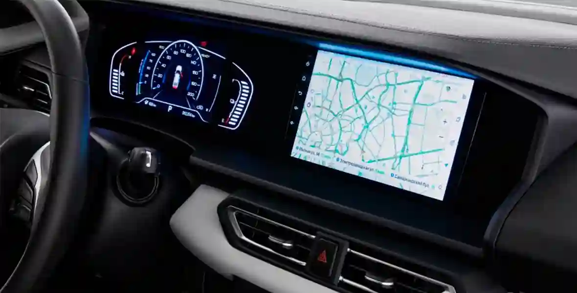 А вот индикатор режима работы климат-контроля — это уже необычно. И не совсем понятно, почему он расположен именно там. Возможно, это связано с тем, что и клавиши управления климатом также располагаются на руле. Зато сам руль вполне удобен и даже эргономически совершенен. 8-дюймовая панель информационно-развлекательной системы заботливо отгорожена от воздействия солнечных лучей защитным козырьком. Впрочем, это не сильно помогает. Яркости, на мой взгляд, недостаточно, а поверхность самого экрана уж слишком глянцевая и с радостью отражает все что только может. И хотя к быстродействию системы, построенной на базе Android, претензий нет, но мне она показалась несколько избыточной и сложной. И большую часть функций я оттуда бы просто убрал.
